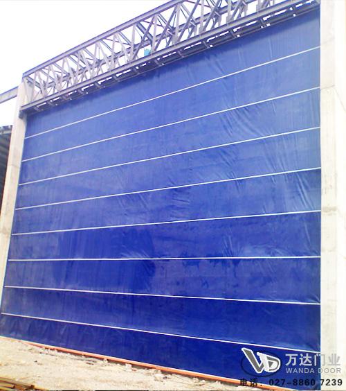 柔性大门是垂直折叠提升的松滋电动门,尺寸可依据具体门洞制作,可以拥有独立自我支撑结构,其门板材质为双层聚纤维基布,内嵌突出的钢制圆管抗风条承载基布与强大的风压。